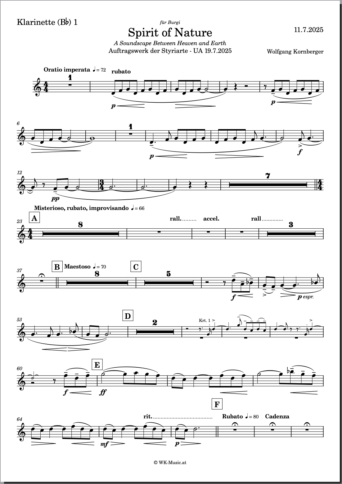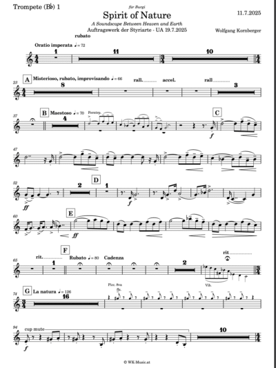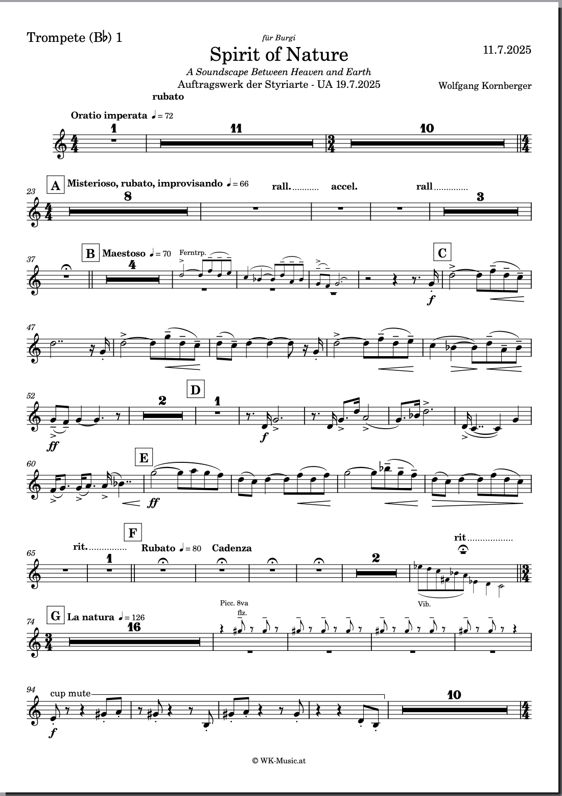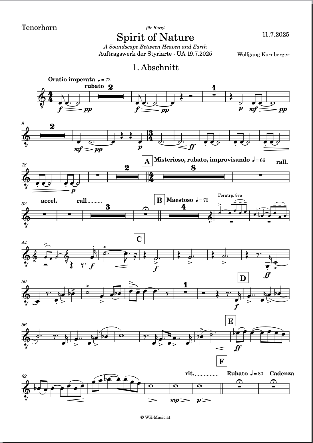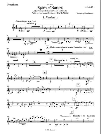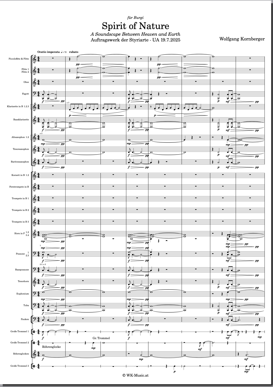 The music leads from the interior of the monastery out into the open landscape, into a vast, resonant world – a world where nature becomes a cathedral. There, the rich colors of the symphonic wind orchestra paint a vivid scenery: the calls of birds, the buzzing of insects, the rustling of the wind – a tone-painting approach to what transcends humanity and yet deeply touches it.